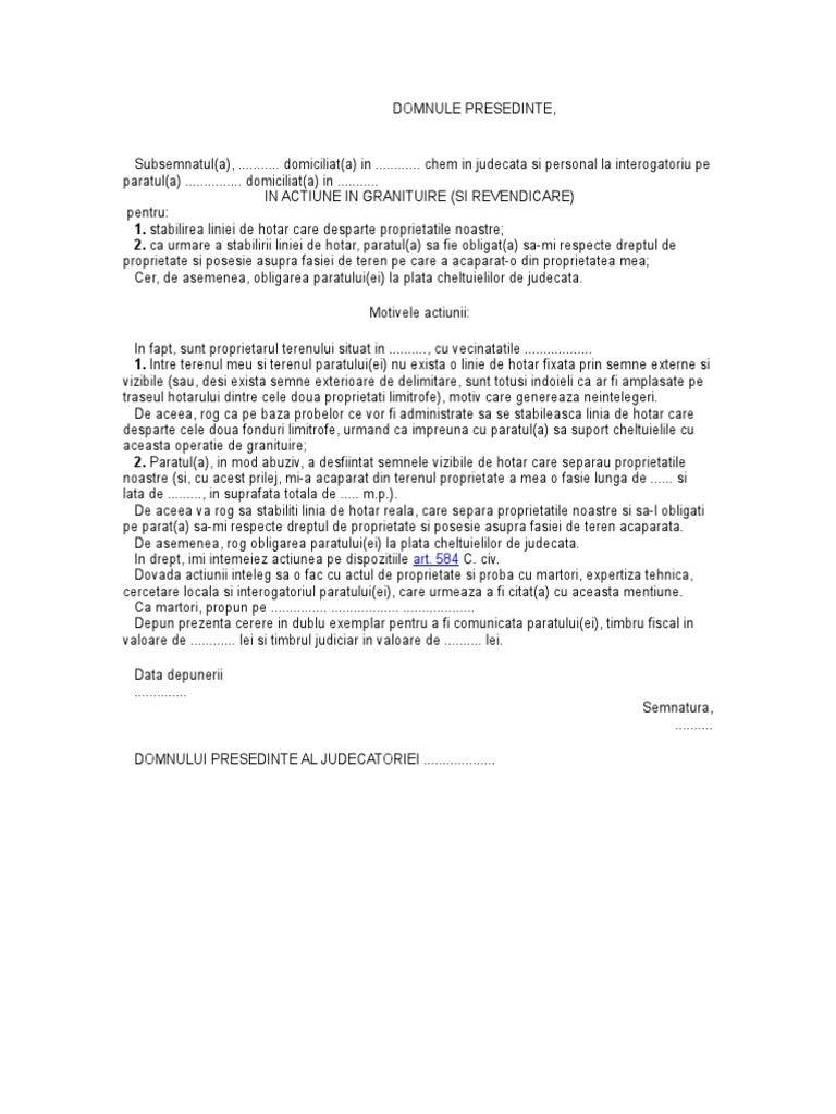 Chemare In Judecata In Actiune De Granituire Model Cerere Pregateste Te Din Timp