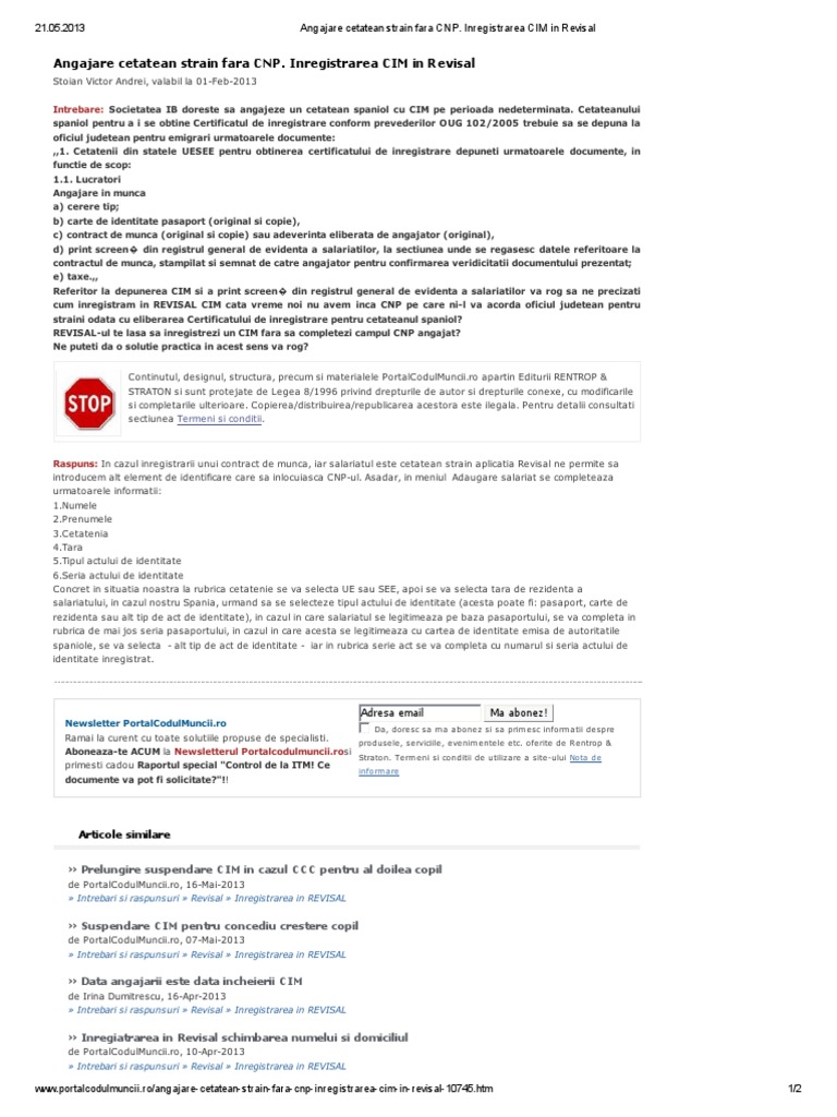 Angajare Cetatean Strain Fara Cnp