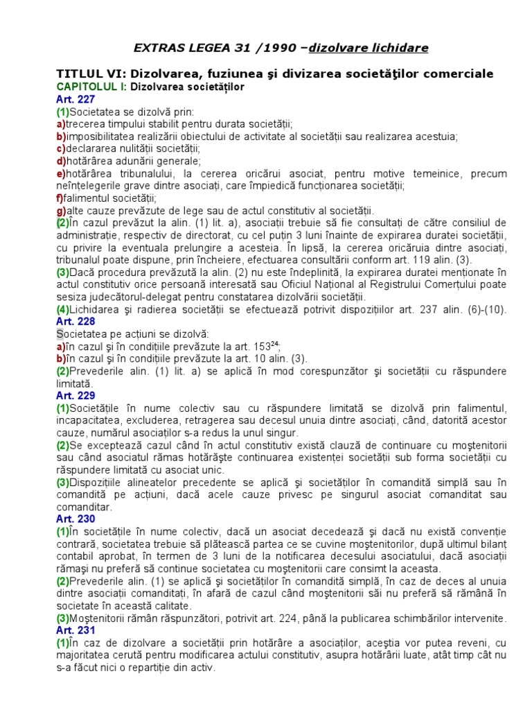 Legea 31 1990 Republicată Privind Societăţile Comerciale