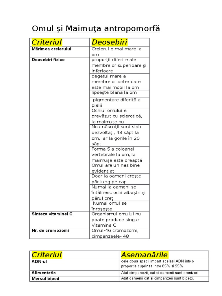 Asemanari Deosebiri Dintre Om Si Maimuta Antropoida
