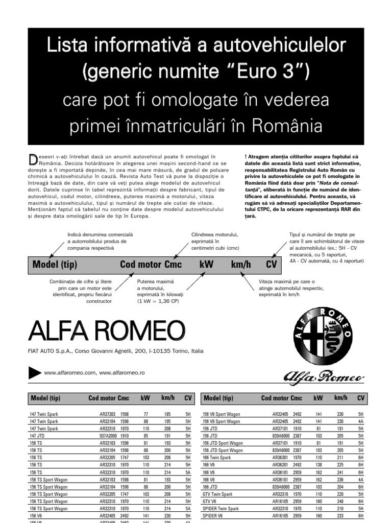 Je suis cel cu problema. Sau poate stiti sigur ce norme de poluare dau cei de la rar pentru diferite coduri motor. Fabia polo 1 4 16v incepand cu 2000 golf 1 4 75cp este euro4 chiar si din 2000 ford focus 2001 motor 1 6 fydd este euro 4 fiat motorul de 1 6 de 103 cp benzina este euro 4 mai stiti si altele. Si ca sa ti raspund.