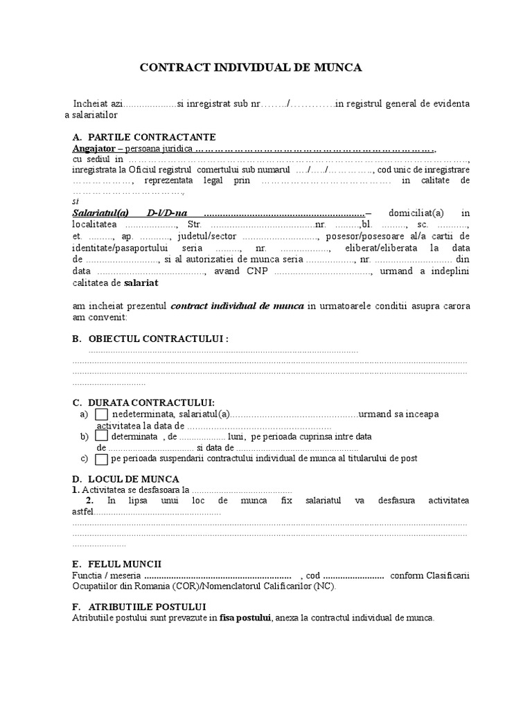 Contract Individual De Munca Cim