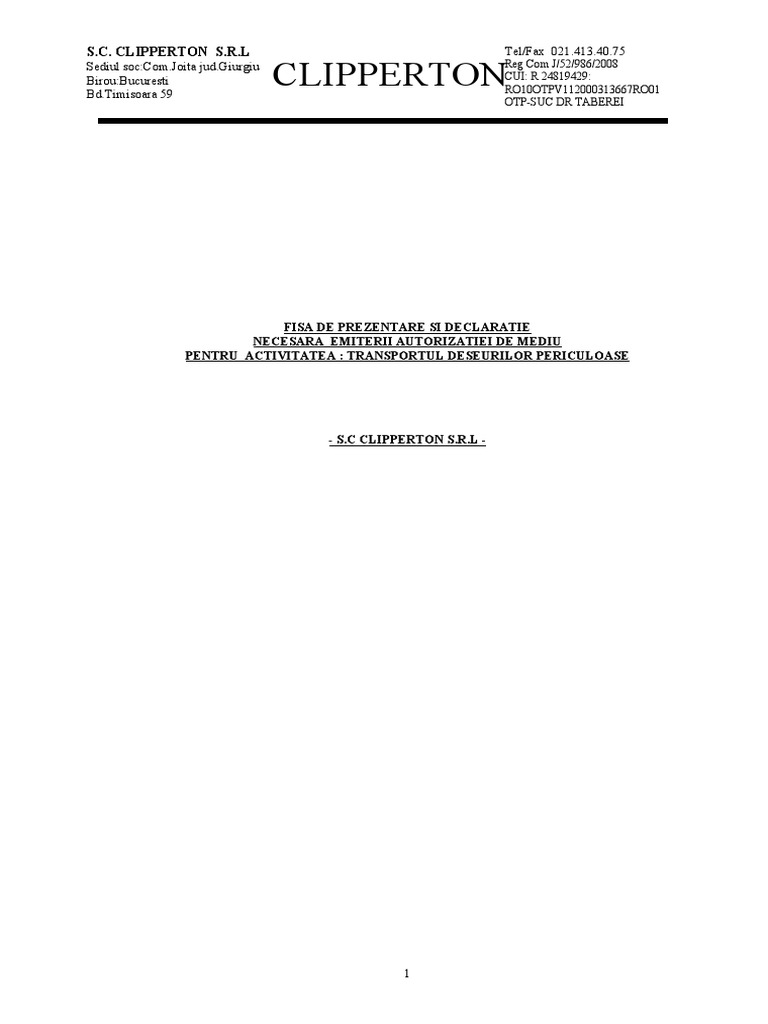 Fisa De Prezentare Si De Declaratie Necesara Emiterii Autorizatiei De Mediu Pentru Docx