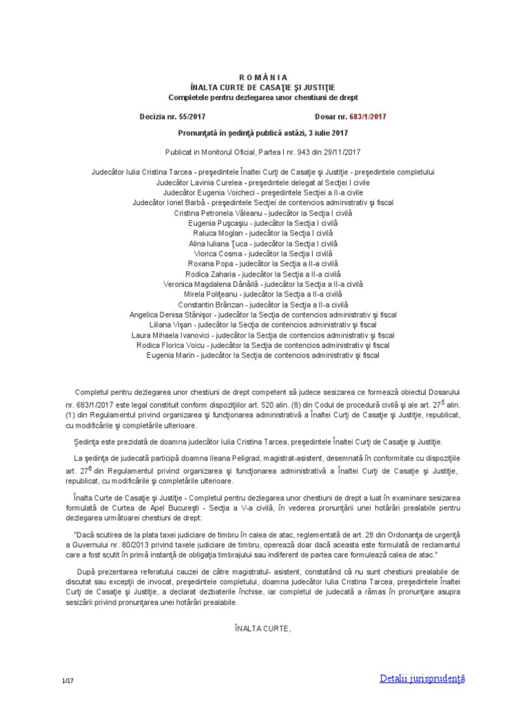 Hp 55 2017 Plata Taxei Judiciare De Timbru In Calea De Atac Scutire