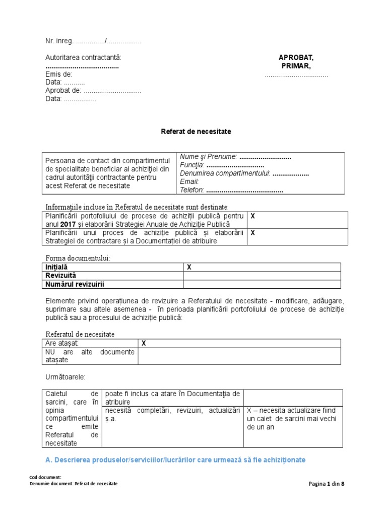 Model Referat De Necesitate Institutii Publice 2017
