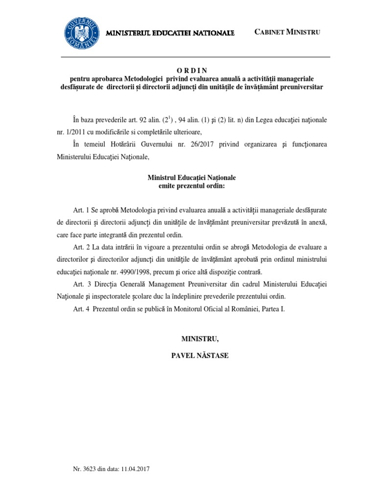 Metodologia Privind Organizarea și Desfășurarea Concursului Pentru Ocuparea Funcțiilor De Director și Director Adjunct Din Unitățile De Invățămant Preuniversitar Din 30 05 2017 Actualizat 2020 Lege5 Ro