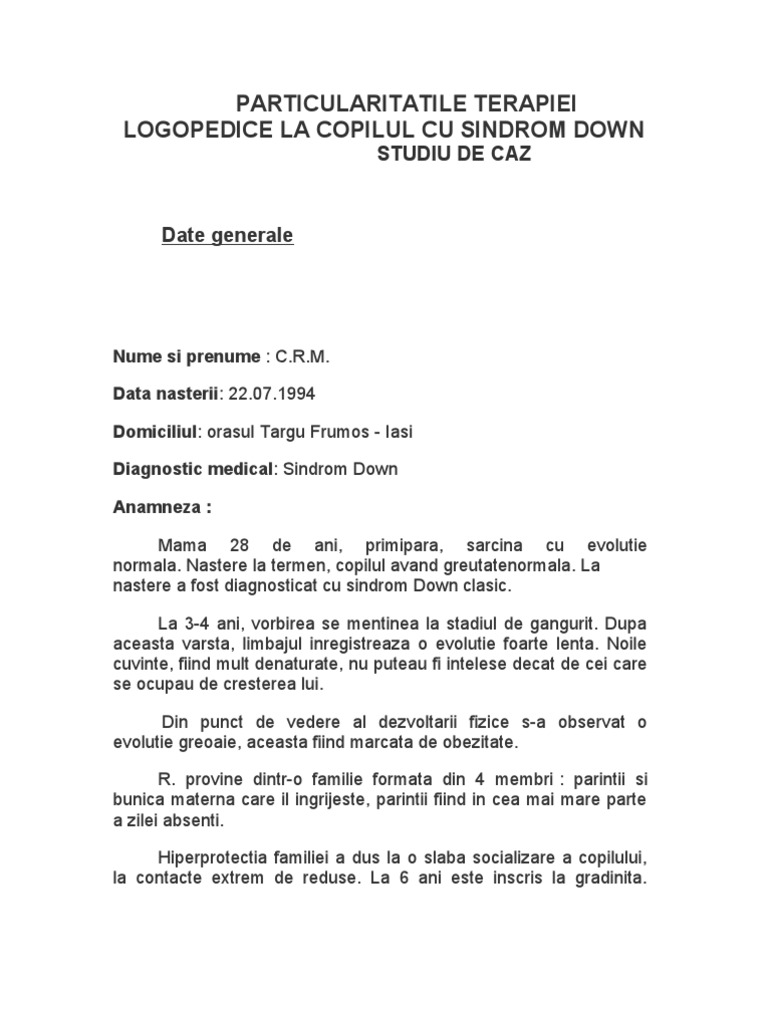 Studiu De Caz Copil Cu Sindrom Down